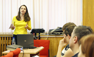 На семинаре выступил тот же состав докладчиков и в той же последовательности, что и на аналогичном мероприятии в МГУКИ — Александр Венедюхин (соорганизатор конкурса WebHiTech), Артемий Ломов и Виктория Бунчук.